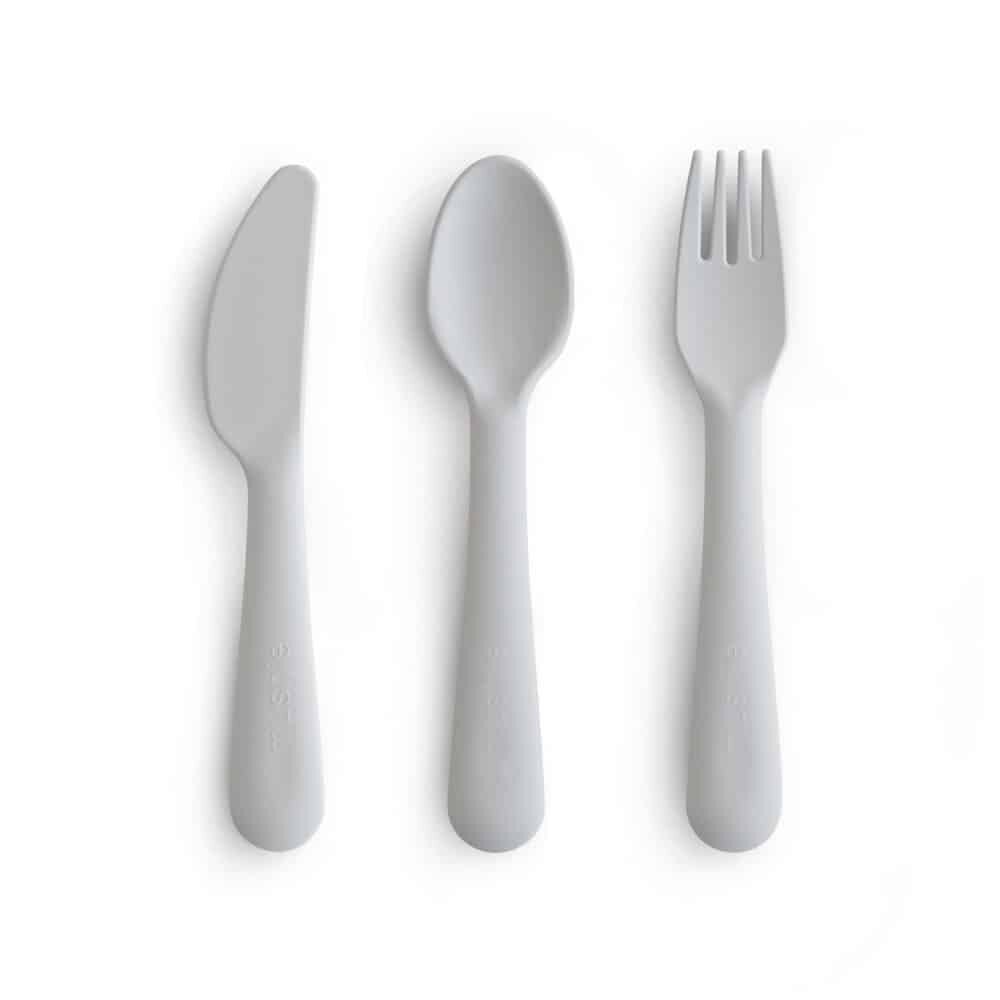 Štýlová a praktická súprava príborov z polypropylénového plastu od Mushie, navrhnutá s ohľadom na tých najmenších.