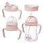 Tato sada obsahuje 4 rozdílná víčka, která můžete jednoduše měnit podle věku a potřeb vašeho miminka. Od kojenecké savičky vhodné již od 3 měsíců, přes hrneček s pítkem pro plynulý přechod z láhve, netekoucí hrneček s brčkem díky závažíčku až po učící hrneček pro děti od 1 roku, které se učí pít samostatně.