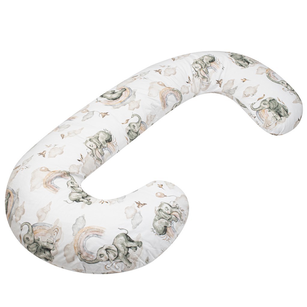 Univerzální kojící polštář ve tvaru C New Baby Sloníci bílo-šedý