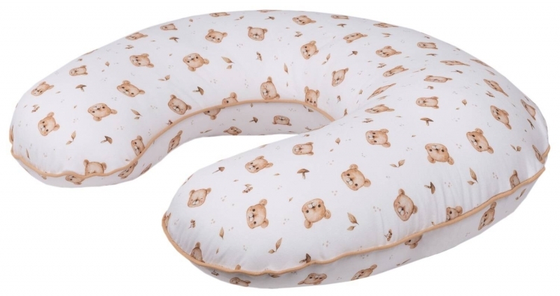 Bavlněný kojící polštář s lemováním Premium, Bear - bílá/hnědá