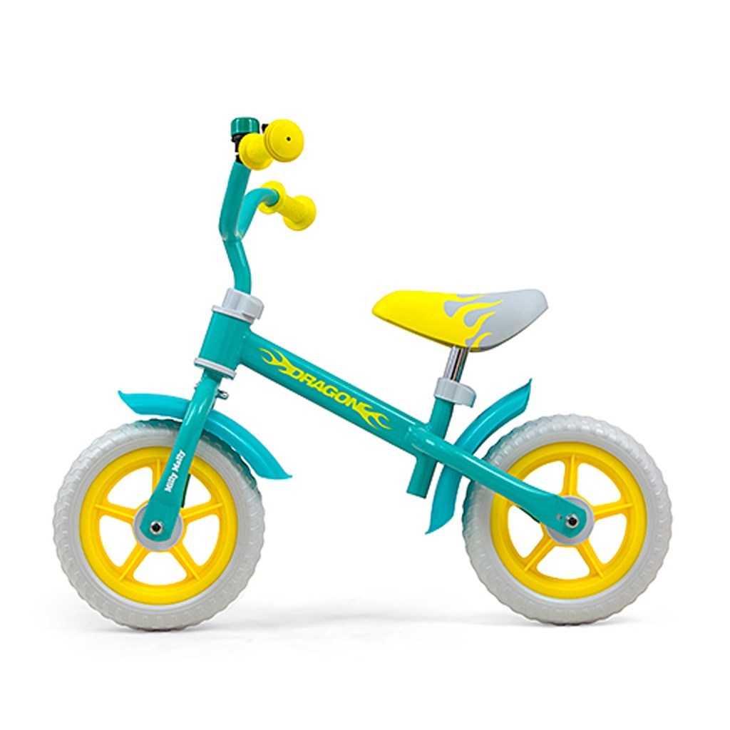 Dětské odrážedlo-kolo Milly Mally Dragon je ideální, když se dítě učí udržet rovnováhu. Je tou nejlepší alternativou pro kolo s bočními kolečky, takže pozdější jízda na klasickém kole bude mnohem jednodušší. Kolo je bez pedálů, díky čemuž se dítě dokáže soustředit hlavně na držení rovnováhy a směr jízdy. CHARAKTERISTIKA:- nastavitelná výška sedadla- výškově nastavitelná řídítka- stabilní a lehká ocelová konstrukce- protiskluzové rukojeti z gumového materiálu- pohodlné, měkké sedadlo- pěnová kola 10" cm- zvonek- maximální zatížení až 20 kg- váha 2,8 kg- kuličkové ložisko v zadním kole- doraz proti přetočení řídítek ROZMĚRY:- vzdálenost mezi zadním a předním kolem 72 cm- nastavitelná výška řídítek 53-57 cm, šířka řídítek 46 cm- výška sedadla 37-41 cm- maximální zatížení 20 kg