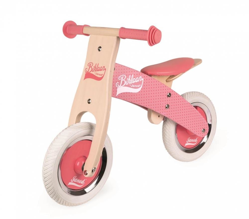 Dřevěné odrážedlo Janod růžové tečkovité na rozvoj rovnováhy od 2-4 let
