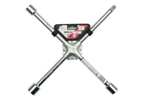 Klíč je vyroben z vysoce kvalitní CrV oceli rozměrů 400 x 400, s průměrem trubek 16 mm. Jeho 3 ramena mají koncovky přizpůsobeny všem šestihranným metrickým typům šroubů a matic používaných u kol osobních a lehkých užitkových vozidel (17, 19, 21 mm)a 4 rameno je opatřeno zakončením pro nástavce 1/2".