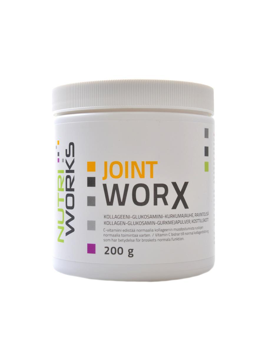 JOINT WORX - komplexní výživa pro chrupavky a vazivový aparát, to vše bez umělých sladidel. Joint Worx obsahuje 9 aktivních složek určených pro všechny jedince zaměřené na kondici a pohyblivost kloubů - kolagen, glukosamin, chondroitin sulfát, měď, vitamín C, mangan, molybden, piperin z černého pepře a extrakt z kurkumy. Joint worx neobsahuje žádná umělá sladidla, pouze kyseliny jablečnou a citronové aroma. Aditivum kurkumy = bonus pro Vaše chrupavky a vazy + silný synergní účinek Kurkuma bývá pro své nedocenitelné účinky nazývána elixírem života. Její aktivní složka kurkumin působí synergně a zesiluje výrazně účinky ostatních složek produktu. Hlavní benefity produktu: