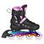 Model je vybaven praktickým systémem čtyřstupňové regulace velikosti - jednoduchým stisknutím tlačítka pod patou lze posunout špičku boty a nastavit jednu ze čtyř velikostí. Tento systém umožňuje, aby brusle rostly spolu s dítětem a současně snižuje celkové náklady na vybavení.