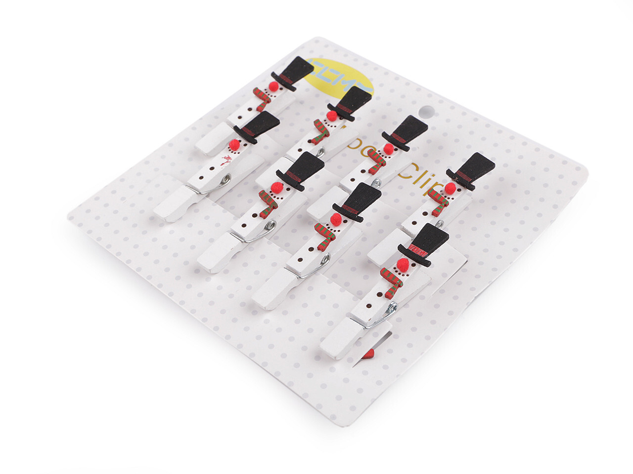 Vánoční dřevěný kolíček sněhulák, sob - 8 ks - 2 bílá sněhulák