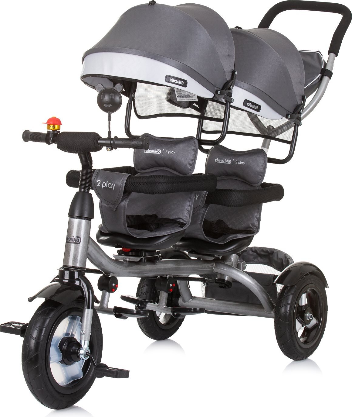 CHIPOLINO Tříkolka pro dvojčata 2Play Silver,Grey