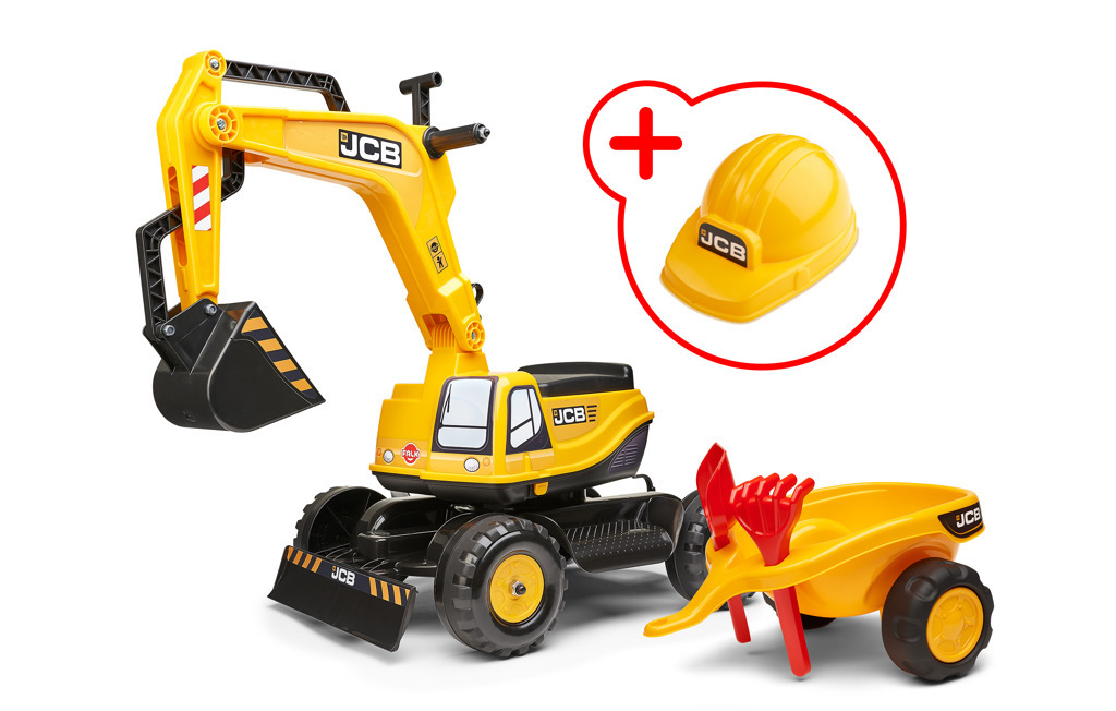 Odstrkovadlo bagr s funkční lžící a otevíracím sedátkem s přilboua valníkem včetně příslušenství na písek. Z vysoce kvalitního aodolného plastu. Velikost 85×38×67 cm. Věk 3+. Všechny traktory Falk jsoutestovány na 50kg - dle požadavků evropských norem.
