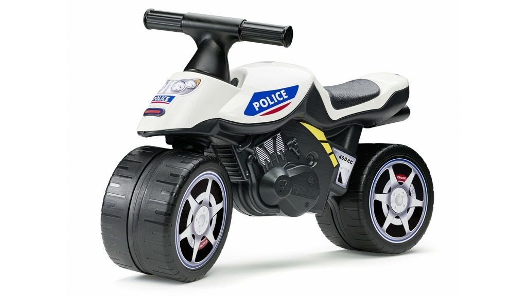 Odstrkovadlo v designu policejní motorky v modro/bílé. Velikost62×25,5×39 cm. Doporučený věk od 1 roku. Všechny odstrkovadla Falk jsoutestovány na 30kg - dle požadavků evropských norem. Vyrobenoz kvalitního a odolného plastu. Vyrobeno ve Francii.