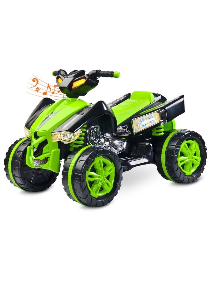 Dětská čtyřkolka Toyz. Čtyřkolka skvěle jezdí a má 2 silné motory. Jezdí sešlápnutím pedálu na stupátku. Směr jízdy určíte tlačítkem vpřed(Forward)/vzad(Backward), které je na řídítkách. Čtyřkolka má hodně funkcí jako je tlačítko pro zapnutí vozidla, světla, tlačítko s melodiem. Kvalitní kola, pevná a kvalitní konstrukce, to vše je zárukou bezpečí pro Vaše děti. S čtyřkolkou si užijete spoustu legrace a zábavy. Raptor je poháněn dvěma silnými motory 25W každého. Dvě baterie s celkovou kapacitou až 14 Ah. 2 Baterie se jednoduše nabíjí nabíječkou. Tato konfigurace umožňuje hru až 1,5 hodiny na jedno nabití. Celkový výkon 50W.