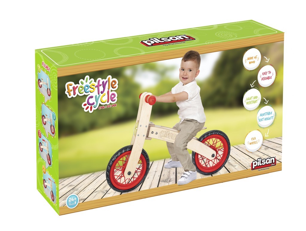 Dřevěné dětské balanční kolo Freestyle je určeno pro malé děti již od 2 let. Jeho odolná konstrukce vznikla v souladu s nejnovější bezpečnostní normou a řídítka jsou vybavena blokádou úhlu řízení, díky čemuž se minimalizuje nebezpečí pádu. Rozvíjí schopnost udržovat rovnováhu a zajišťuje motorický rozvoj dítěte.Odolná konstrukce - navržená v souladu s nejnovější bezpečnostní normou EN71-1.Hladký, obroušený rám - bez drsných nebo ostrých prvků. Rukojeti pokryty neklouzavým materiálem. Ideální příprava před jízdou na klasickém kole. Kola z pěny EVA - odolná vůči oděru.