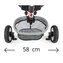 Je vyrobena z kvalitních a odolných materiálů. Má moderní konstrukci, pohodlné a ergonomicky tvarované sedadlo, které je otočné o 360 stupňů, což umožní dítěti cestovat ve směru nebo proti směru jízdy. O pohodlí a bezpečí během jízdy se stará bariérka, tříbodové bezpečnostní pásy, pohodlné stupačky nebo gumová kola, které skvěle absorbují rázy a poskytují dobrou přilnavost. Tříkolku může ovládat jak dítě, tak i rodič pomocí nastavitelné rukojeti pro tlačení. Po odebrání vodící tyče, sklápěcí stříšky, která chrání před sluncem nebo ostatních komponent bude sloužit jako tříkolka. Tříkolku lze používat rovněž jako alternativu golfového kočárku. Pro uložení hraček nebo potřeb pro dítě je zde praktický úložný košík.