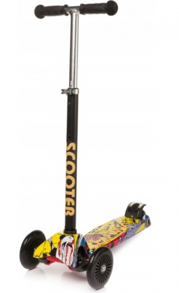 Koloběžka má hliníková řídítka s gumovými úchyty, které zabraňují sklouznutí ruky, má dvě úrovně nastavení výšky, takže jej lze snadno přizpůsobit výšce dítěte. Lze ji rozložit pomocí skrytého tlačítka, díky kterému koloběžka nezabere mnoho místa při přepravě v kufru auta.