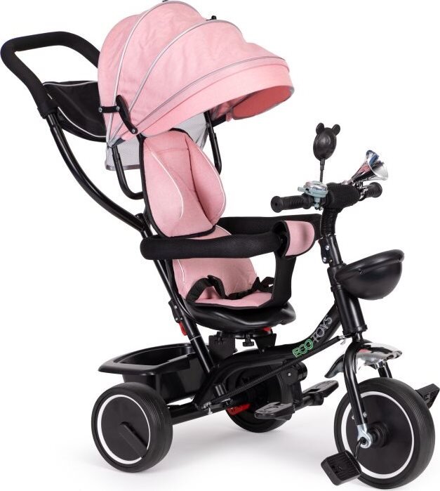 ECOTOYS Tříkolka se střechou a vodící tyčí růžová