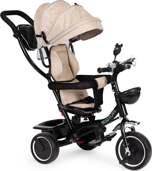 ECOTOYS Tříkolka se střechou a vodící tyčí béžová