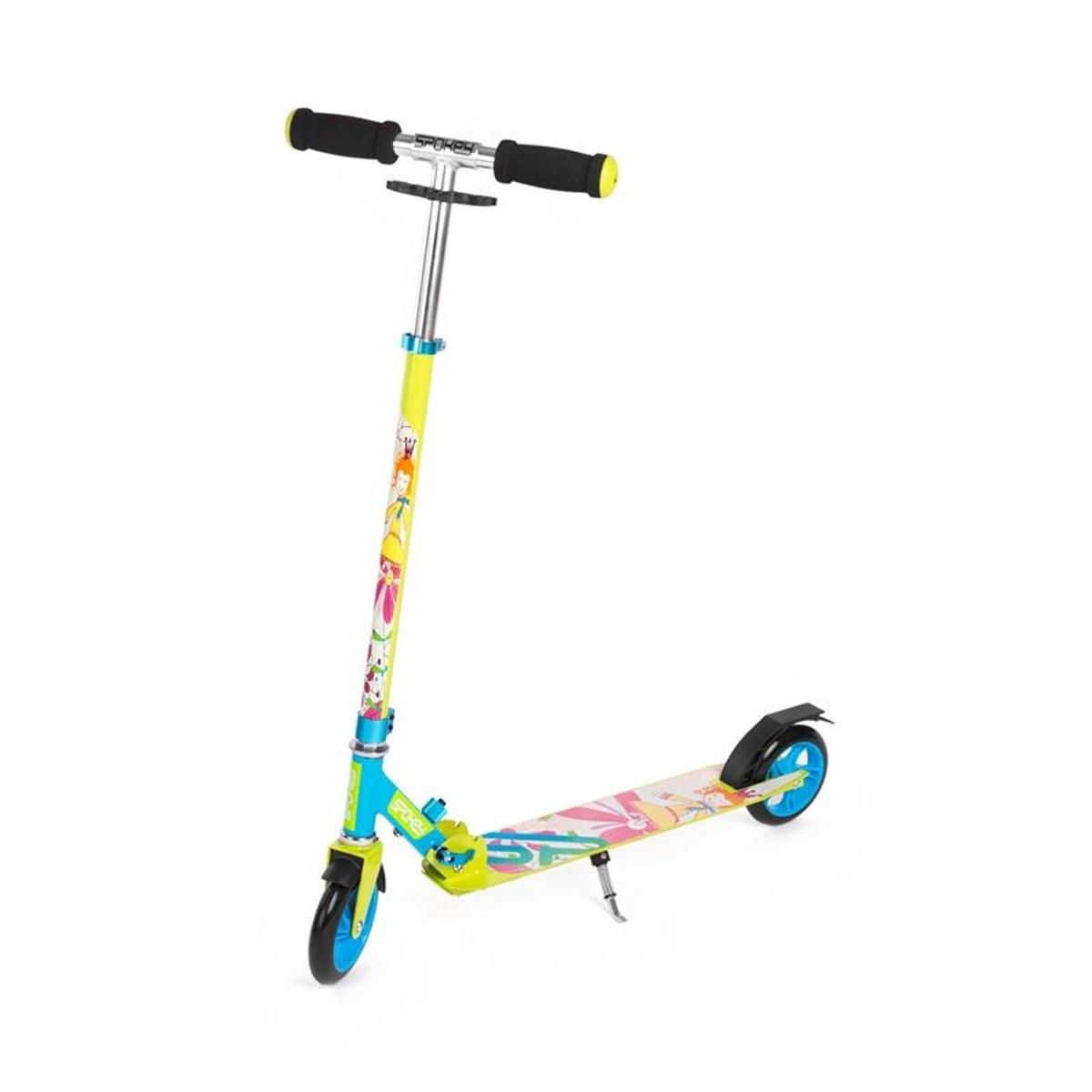 ložiska: ABEC7 Chrome materiál: 100% hliník široký protiskluzový povrch s grafikou rozměry desky: 56x10 cm max. výška řídítek (od podlahy): 97 cm, min. výška: 82 cm max. výška řídítek (od desky): 88 cm, min. výška: 73 cm skládací nožní brzda měkké rukojeti sklopný stojánek popruh pro přenášení maximální nosnost: 100 kg váha: 2,85 kg norma EN 14619