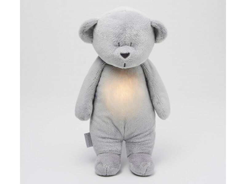Bříško medvídka svítí a slouží jako noční světlo s výběrem sedmi barev svícení. Jemné světlo pomáhá dítěti cítit se v postýlce bezpečně. Světlo je možné zapnout i bez zvuků. Při zapnuté funkci Shake světlo zapnete zatřesením hračkou. Medvídek se při svícení nijak nezahřívá a je pro dítě zcela bezpečný.