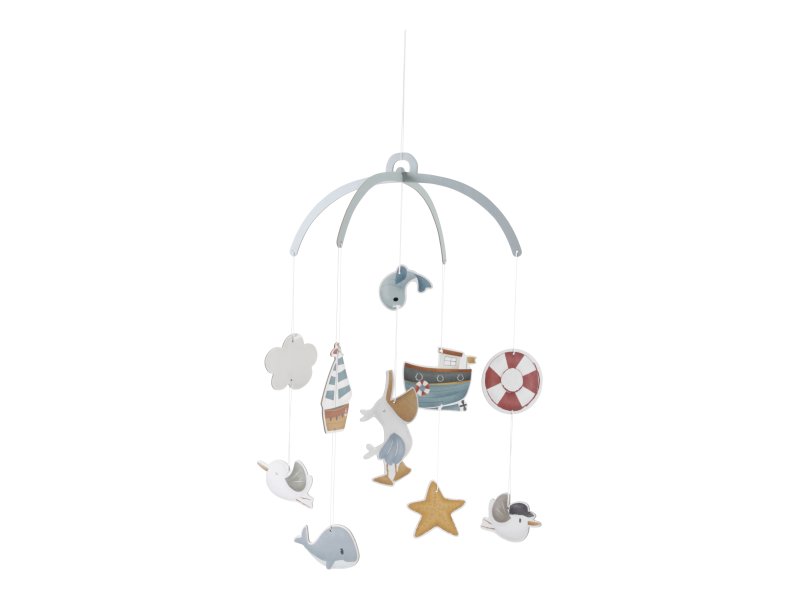 Dekorativní kolotoč Námořnický záliv je navržen tak, aby zaujal pozornost vašeho dítěte v postýlce a zároveň působil jako krásný doplněk dětského pokoje. S motivy plachetnic, racků, velryb a dalších symbolů života na moři stimuluje zrak dítěte a přispívá k jeho uklidnění před usnutím. Je součástí elegantní kolekce Little Dutch Námořnický záliv, která nabízí také ložní prádlo, různé dekorace, dřevěné i plyšové hračky či jídelní doplňky pro nejmenší.