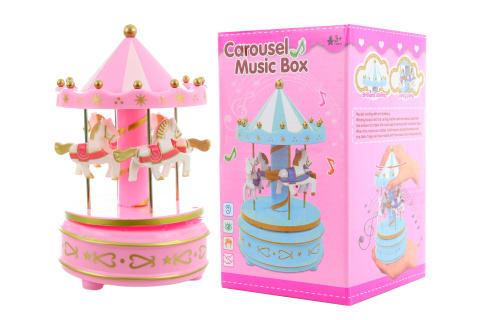 Ruční poháněný kolotoč není jen hračkou, ale také zdrojem radosti a rozvoje dětské fantazie. Stačí jej otočit a melodie se rozezní, zatímco se kolotoč pomalu točí. Tento jednoduchý, přitom krásně účinný mechanismus baví a uklidňuje malé i větší děti.