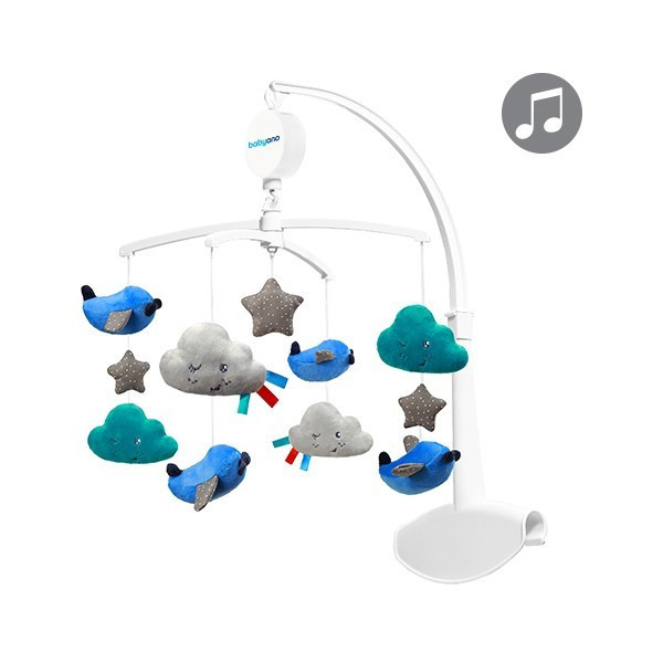 Univerzální hudební kolotoč je ideální pro snadné usínání vašeho malého drobečka. Veselá letadélka a přátelské mráčky zaujmou jeho pozornost a příjemné melodie ho uklidní. Speciálně navržené držadlo umožňuje kolotoč umístit k dřevěné i k cestovní postýlce, a díky tomu můžete kolotoč vzít s sebou i na cesty.