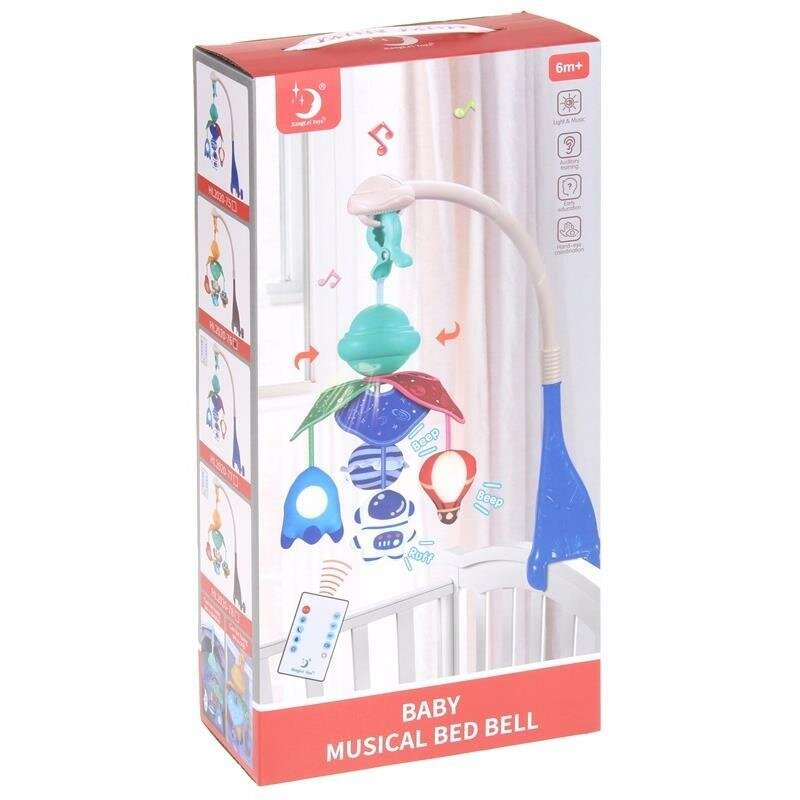 Czas na wirującą zabawę w sensorycznym wydaniu. Kolorowa karuzelka do łóżeczka to idealny pomysł na zabawkę dla najmłodszych dzieci. Obracające się zabawki - grzechotki zachęcają do zabawy w ciągu dnia, a spokojne melodie uspokoją i przygotują do snu. Dzięki wielokolorowym i różnorodnym kształtom maluszek rozwija wyobraźnie oraz zmysł słuchu i wzroku.Charakterystyka:- Karuzelka posiada wygodny uchwyt za pomocą, którego w łatwy i bezpieczny sposób przymocujesz ją do ściany łóżeczka.- Melodia oraz obrót karuzelki aktywowany jest poprzez włącznik on/off.- Kolorowe grzechotki w kształcie sowy, pszczółki, papugi i ptaszka.- Możliwość umieszczenia karuzelki na pałąku lub też przymocowanie jej za pomocą klamry do wózka, czy też bocznej ściany łóżeczka.- Zestaw nie zawiera pilota, karuzelka uruchamiana jest poprzez włącznik on/off.Zasilanie: 3 baterie AAA (brak w zestawie).Wysokość karuzeli na pałąku: 56 cmWymiary opakowania: 21,5x4x9cmWiek: 6m+