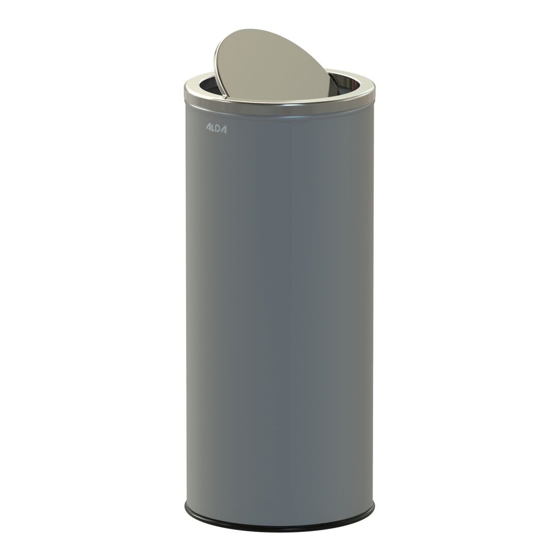 Odpadkový koš Swing 45 L, výkyvné víko, lakovaná ocel, šedá