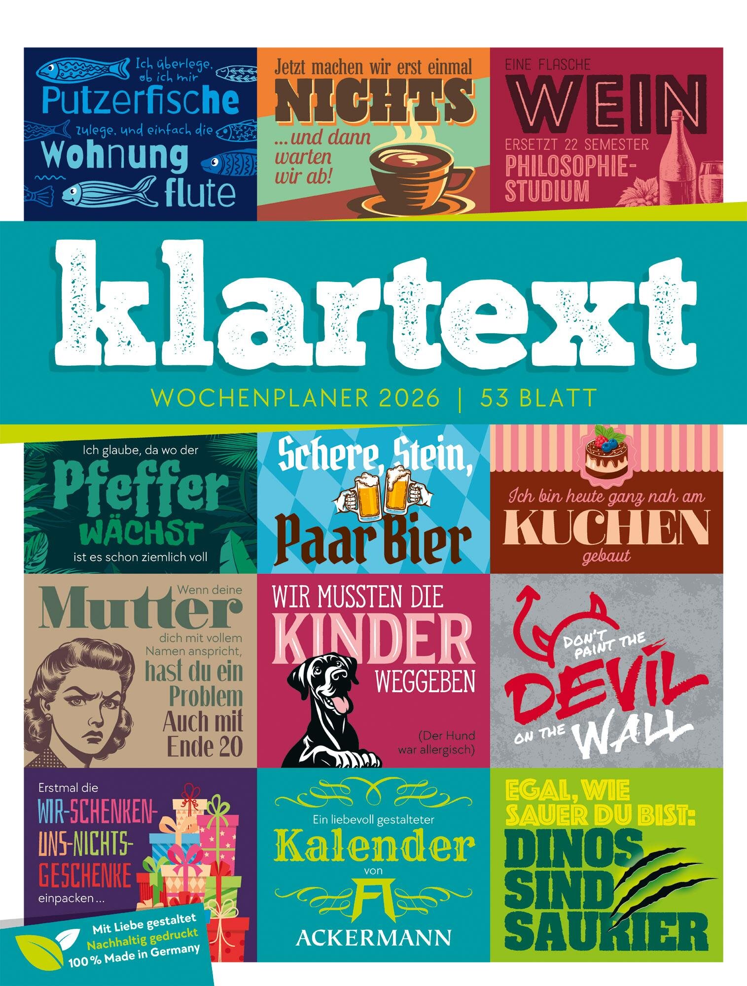 Klartext Sprüchekalender - Wochenplaner Kalender 2026 (německy)