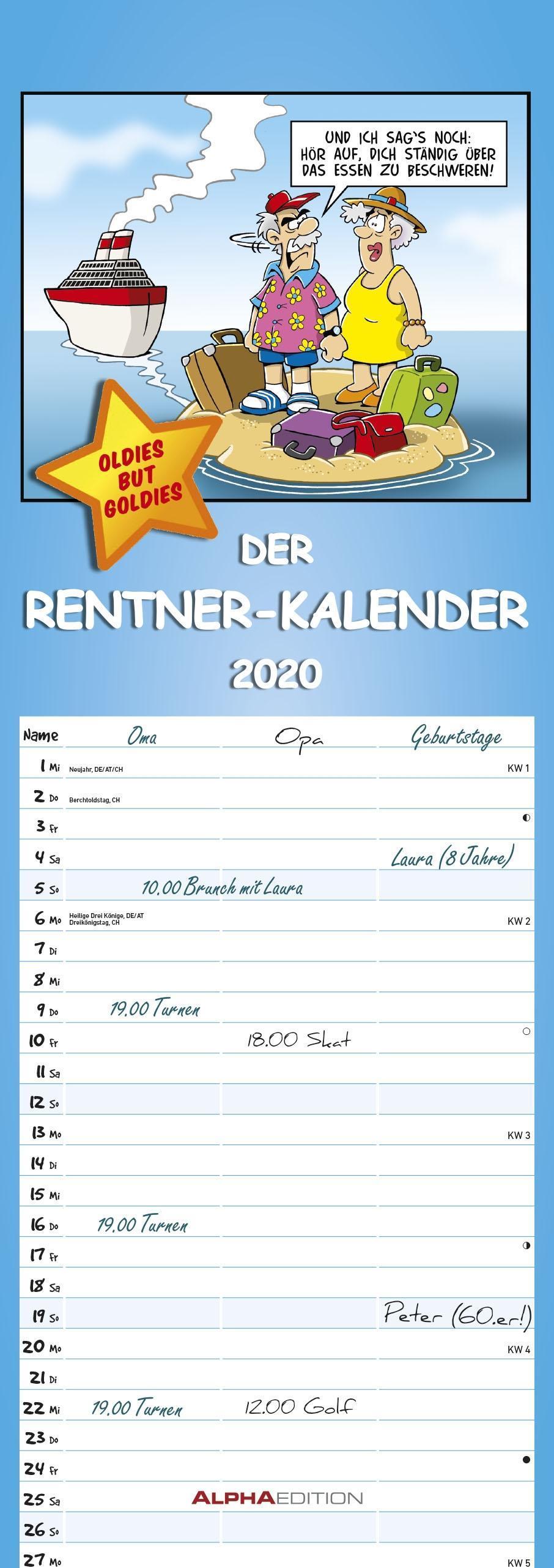 Rentnerkalender 2020 - Streifenkalender (německy)