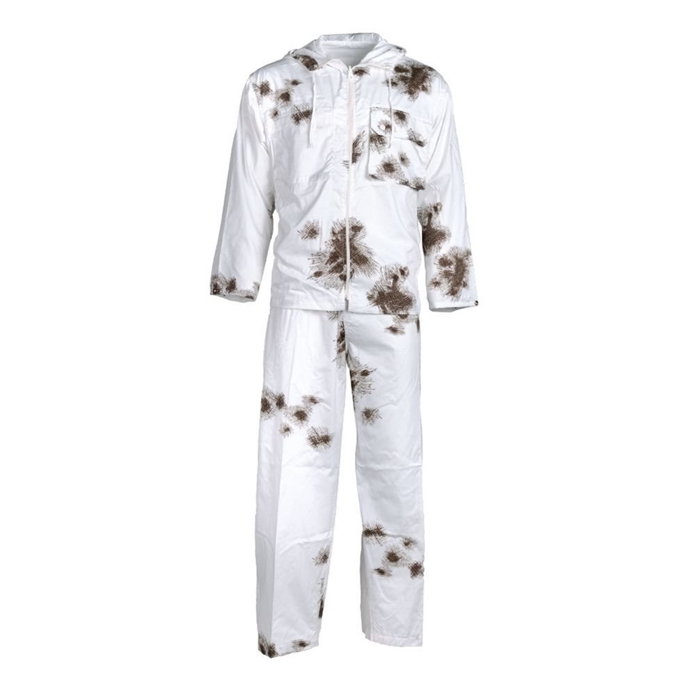 Maskovací převlek vyrobený pro BW armádu do sněžných podmínek. Výborně kryje díky šedivým flekům. Bunda se zapínáním na zip. Kalhoty s kšandami. Materiál 65% bavlna 35% polyester.