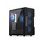Skříň formátu Middle Tower s průhlednou bočnicí z tvrzeného skla nabízí dvě 2,5" pozice pro SSD disky a dvě 3,5" pozice pro pevné disky. Na horní části se nachází dva USB 3.0 porty, sluchátkový výstup a audio vstup pro mikrofon. Vybavena je čtyřmi 120 mm ventilátory s ARGB podsvícením, které spolu s perforovaným čelním panelem zajišťují dostatečné proudění vzduchu. Důmyslné řešení umožňuje pohodlné umístění až 360 mm dlouhého výměníku vodního chlazení na přední straně. Ve skříni je dostatek prostoru pro chladič CPU do výšky až 162 mm a grafickou kartu o délce až 370 mm. Dodávána je bez zdroje. Součástí je také interní ARGB ovladač a sada prachových filtrů.