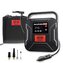 Přenosný vzduchový kompresor na 12V s LCD manometrem a LED osvětlením. Součástí balení jsou přídavné adaptéry, vše v praktickém přenosném obalu.