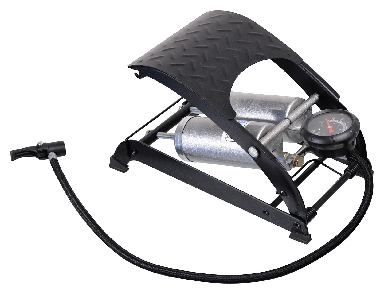 Vysoce výkonná hustilka osazená dvěma písty, která je určená k huštění pneumatik automobilů, motocyklů, jízdních kol, matrací, míčů atp. Součástí balení jsou adaptéry pro různé použití.