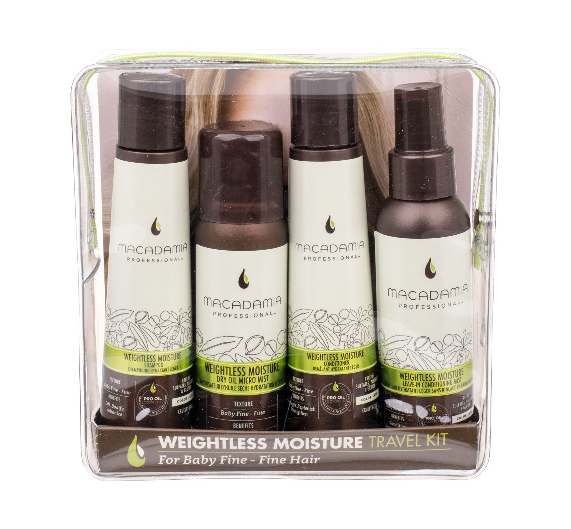 Macadamia Professional Weightless Moisture šampon 100 ml + kondicionér 100 ml + bezoplachový kondicionér 100 ml + hydratační suchý olej 50 ml + kosmetická taštička