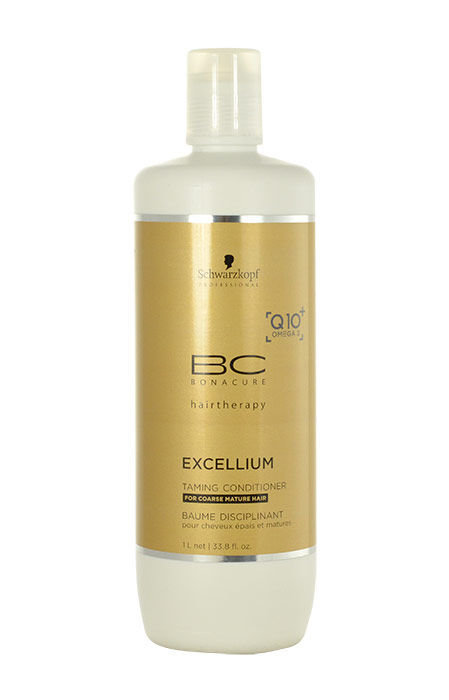 Kondicionér **Schwarzkopf BC Bonacure Excellium Taming Conditioner**. Kondicionér Schwarzkopf BC Bonacure Excellium Taming Conditioner omlazuje a regeneruje mdlé a zralé vlasy. Hloubkově vlasy vyživuje a hydratuje. Pomáhá zachovávat barvu vlasů a zabraňuje krepatění. Po použití budou vlasy jemné, zdravé a mladistvé. **Použití**: Aplikujte na umyté vlasy. Nechte chvíli působit a poté důkladně opláchněte.