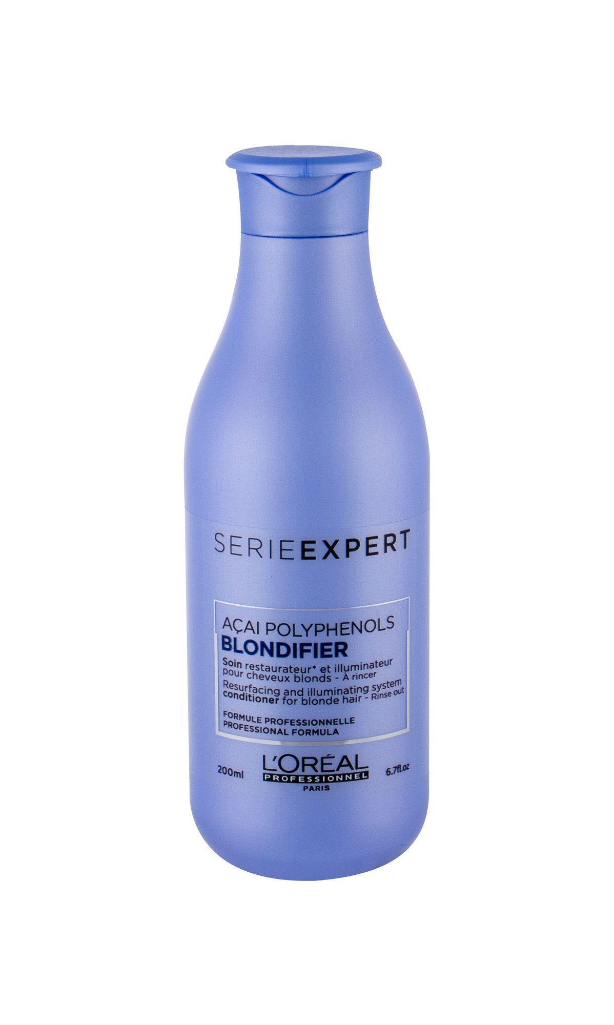 Kondicionér pro blond vlasy** L´Oréal Professionnel Série Expert Blondifier.** Kondicionér obsahuje polyfenoly z bobulí Acai, které vlasy účinně vyživují, zvyšuje jejich zářivou blond barvu a zároveň je hydratují. Vlasy jsou hladší a lépe se rozčesávají. **Použití**: Naneste na umyté vlhké vlasy a nechte krátce působit. Poté důkladně opláchněte.