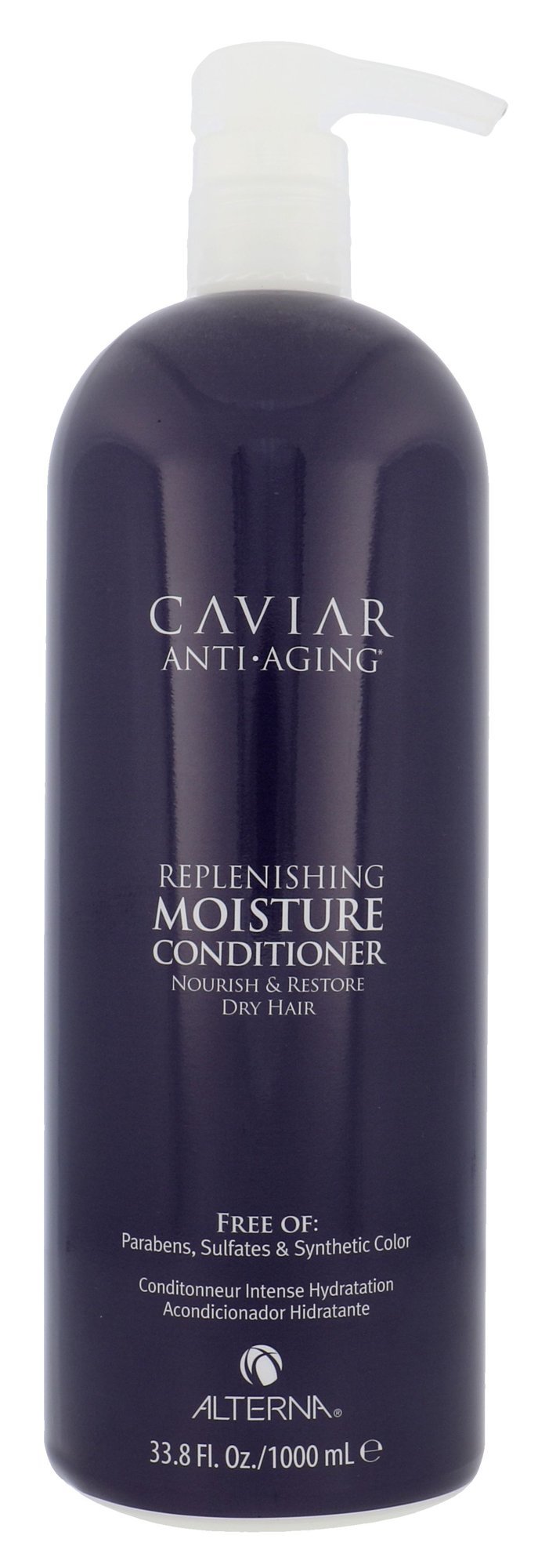 Kondicionér **Alterna Caviar Replenishing Moisture**. Kondicionér Alterna Caviar Replenishing Moisture obnovuje a regeneruje suché vlasy. Složení obsahuje Photozyme Complex, který chrání vlasy před poškození. Extrakt z kaviáru a vitamín C posilují a vyživují vlasy. **Složení**: _Photozyme Complex_ _extrakt z kaviáru_ _vitamín C_ **Použití**: Aplikujte na umyté vlasy. Nechte chvíli působit a poté důkladně opláchněte.