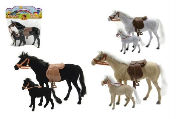 Kůň se sedlem a ohlávkou pro všechny obdivovatele a milovníky koní. Kůň je 13 cm velký, plastový, s povrchovou úpravou fliška. V balení také naleznete hříbátko. Figurky využijete například při hraní na vaší farmě. Vhodné od 3 let. číst celé