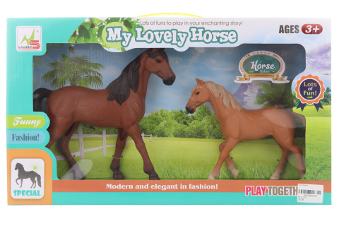 Sada 2 plastových koníků. Rozměry většího koníka cca 20 x 19 cm. Rozměry balení cca 44,5 x 25,5 x 7,5 cm. Věk 3+ číst celé