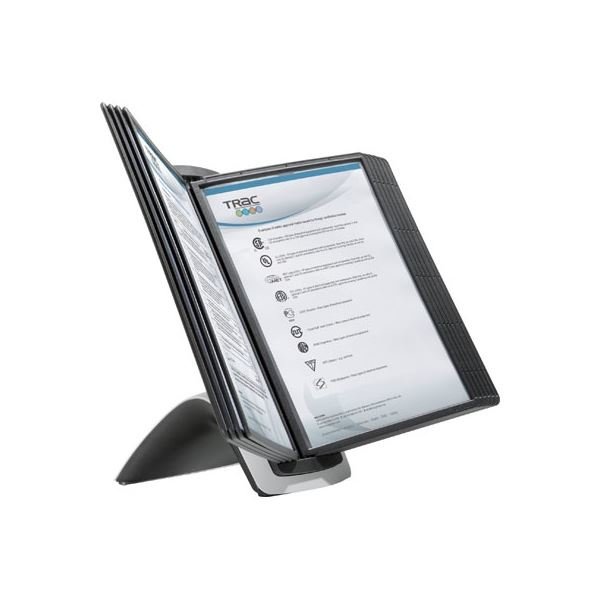 *Pultový stojan v nadčasovém designu, pevná plastová základna*Snadná výměna vložených informací, jako např. ceníků, telefonních seznamů atp. díky oboustrannému otvírání*Matná fólie zabraňuje rušivým odrazům světla*10 kapes formátu A4 je součástí dodávky číst celé
