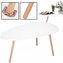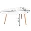 Stolek je vyroben z kvalitních materiálů, přičemž jeho velká deska v bílé barvě dodává interiéru svěží a minimalistický vzhled. Dřevěné nožičky dodávají stolku stabilitu a pevnost, což zajišťuje jeho dlouhou životnost a odolnost. Kombinace světlé desky a přírodního dřeva vytváří harmonický a elegantní kontrast, který se snadno začlení do různých stylů interiéru - od moderního po skandinávský.