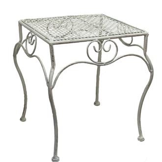 Dekorativní kovový stolek. Velmi pěkný doplněk do interiérů, ale i na terasu. Rozměry : 30 x 30 cm, výška stolku je 36 cm. Barva : bílá. Materiál : kov. číst celé