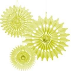 Papierowe rozety dekoracyjne, 3 sztuki w opakowaniu. Kolor żółty. Rozmiary: 1 x 14 cm, 1 x 20 cm, 1 x 30 cm. Produkt wykonany z materiałów pozyskanych legalnie, odpowiedzialnie i z poszanowaniem środowiska oraz lokalnych społeczności.