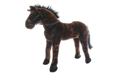 Velký plyšový kůň s uzdičkou a otěžemi. Kůň má stabilní kostrukci na hraní i sezení. Nosnost 100 kg. Rozměry cca 70 x 60 x 20 cm. Věk 3+