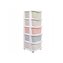 Pojízdná skříňka na kolečkách s pěti prostornými zásuvkami. Vhodná do dětského pokoje na hračky, do koupelny nebo jako botník do předsíně. Ochrana proti vypadnutí, pohodlné rukojeti kvalitní materiál, pastelové barvy, snadno se čistí.Rozměry 37x37x100 cm (ŠxHxV).