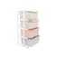 Pojízdná skříňka na kolečkách se čtyřmi prostornými zásuvkami. Vhodná do dětského pokoje na hračky, do koupelny nebo jako botník do předsíně. Ochrana proti vypadnutí, pohodlné rukojeti kvalitní materiál, pastelové barvy, snadno se čistí.Rozměry 37x37x80 cm (ŠxHxV).
