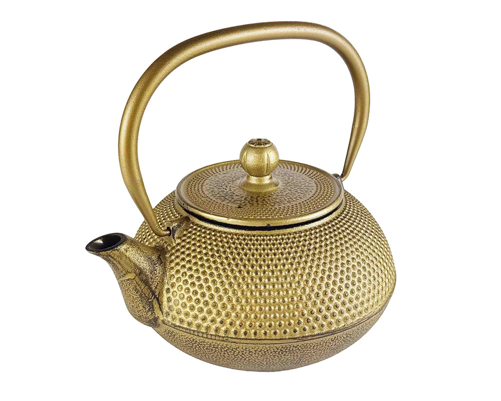 Litinová konvice Kinra v zlaté barvě představuje dokonalou kombinaci tradičního designu a moderní praktičnosti. Tato konvice o objemu 800 ml je ideální pro přípravu a servírování čaje pro menší skupiny nebo rodinné setkání. Její robustní konstrukce z litiny zajišťuje vynikající tepelnou retenci, díky čemuž čaj zůstane dlouho horký a plný chuti. Zlatý povrch dodává konvici luxusní vzhled, který se hodí do každé kuchyně nebo jídelny, ať už v moderním nebo klasickém stylu.