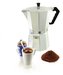 Tradiční hliníkový kávovar pro výrobu výborné domácí kávy. Jednoduchý způsob přípravy velmi blízký espresso, ovšem za zlomkové náklady. Kávovar má objem 300 ml.Návod k přípravě:1. namelte kávu na střední, až jemnější stupeň2. do spodní části konvičky nalijte vodu, ideálně pokojové teploty, ne studenou, až pod přetlakový ventil na boku3. nasaďte trychtýřový zásobník na kávu a naplňte jej až povrch kávou. Kávu nepěchujte, pouze zarovnejte4. našroubujte hlavu konvičky a pořádně utáhněte5. dejte kávu vařit, ideálně na plynový vařič. Při vaření mějte víko konvičky zavřené. Vaření hlídejte, po začátku přetékání kávy do horní části konvičky stáhněte plamen a ještě před koncem extrakce vařič vypněte, aby se spodní část nezačala připalovat. Káva se vaří cca 5 minut, avšak záleží na velikosti konvičky a typu vařiče6. kávu podávejte do šálků.