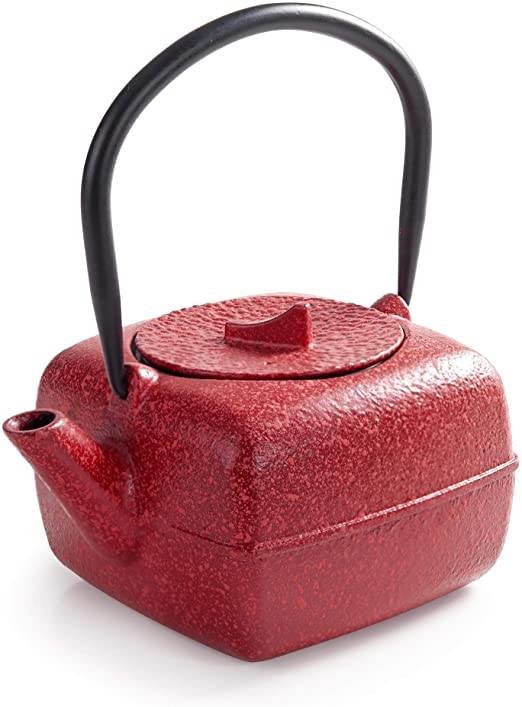 Litinová konvička na čaj červené barvy. Objem 600 ml. číst celé