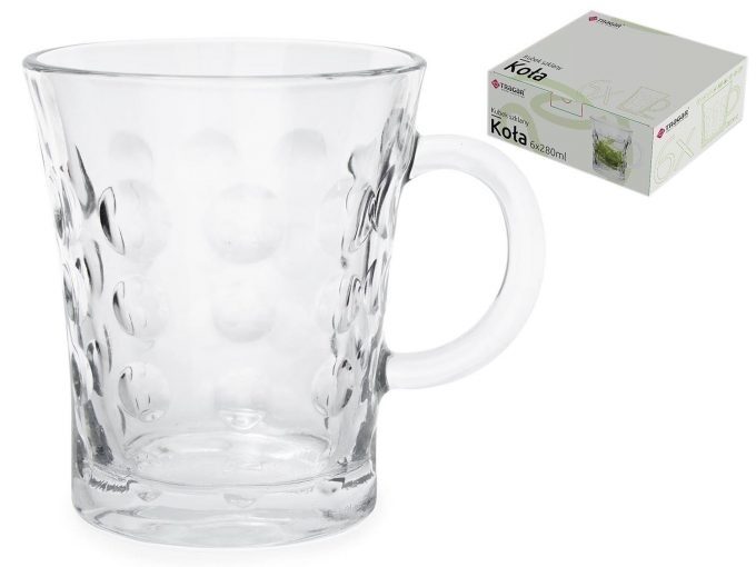 Hrnek objemu 280 ml je hrnek s uchem konického tvaru vyrobený z čirého skla. Hrnek je vhodný do myčky nádobí. Cena za balení v kartonu 6 ks. EAN 5908239662554