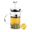 Konvice se sítkem snadno a rychle připraví kávu bez lógru nebo sypaný čaj bez lístků či květů. Pomocí jemného sítka stlačíte pevné částečky z nápoje na dno konvice. Je ale také skvělá pro přípravu ledové kávy s hustou pěnou (pouze voda, instantní káva, popřípadě cukr nebo med a napěníte). Výborně napění teplé mléko do kávy nebo dětské kakao či caro. Snadná manipulace, jednoduché čištění. Materiál: sklo (odolné teplotám do 180 °C, ale není varné sklo!), plast, nerez. Rozměry: objem 0,8 l, pr. 9,5 cm, v. 18 cm.